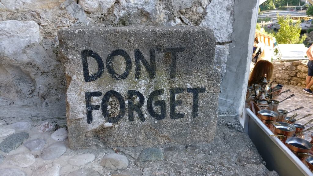 Quella sera, a Mostar, il ponte venne illuminato di verde, col simbolo del fiore di Srebrenica, che ricorda il massacro di quelle vittime innocenti, trucidate e dimenticate. Niente cene all’aperto, niente musica.